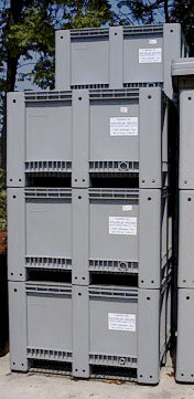 Die Palloxen sind säurebeständig, strapazierfähig und stapelbar. Wegen der geringen Abmessungen können die Palloxen direkt am Entfall, sprich unter dem Band eingesetzt werden.